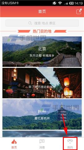 1)打开【艺龙驴友】,进入首页后点击【我的】按钮。(如下图)