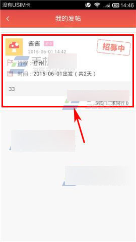 2)接着选择【我的发帖】,点击一个正在招募的【贴子】。(如下图)