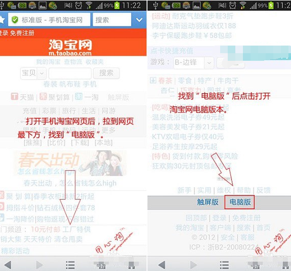 手机淘宝评价怎么修改:一、首先打开手机浏览器,然后打开淘宝手机版,然后在淘宝手机版网页底部点击切换到“电脑版”,如下图所示。