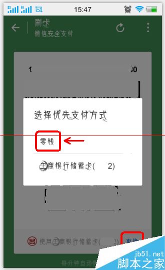 4、点击手机右下角更换,“更换”在下方银行卡最右侧。然后选择零钱支付,点击零钱即可。