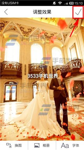 3)接着点击【相册】一项,从本地相册中挑选一张照片,尽量是竖图,然后点击【√】发送即可。(如下图)