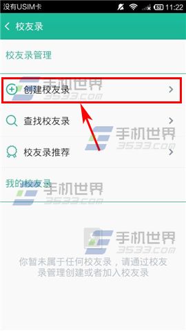 2)点击【校友录】,接着再选择【创建校友录】。(如下图)