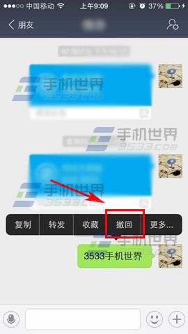 2)在长按后,会弹出对话框,选择对话框里的【撤回】按钮就可以撤回信息了。