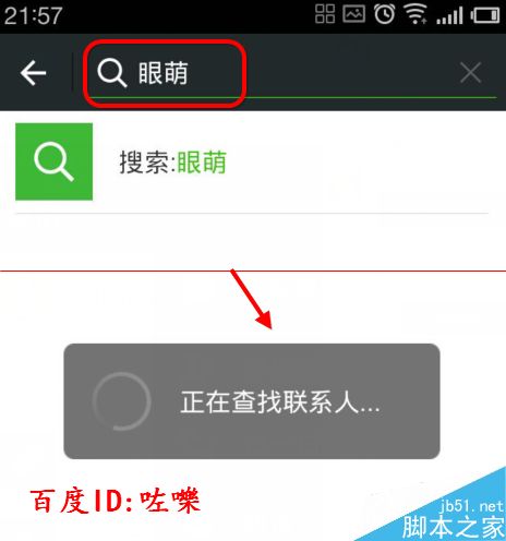 2、在添加朋友搜索栏目中输入 眼萌,如图
