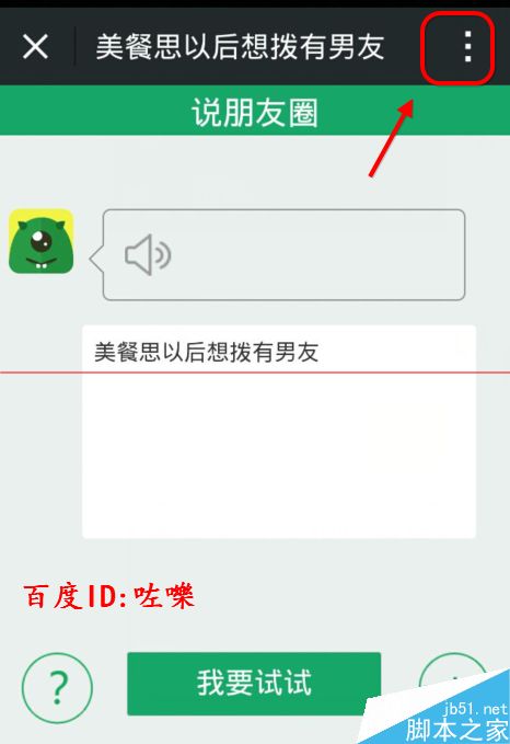 5、发送语音文字朋友圈信息,测试眼萌的信息没有问题之后,可以点击右上角选项---分享到朋友圈