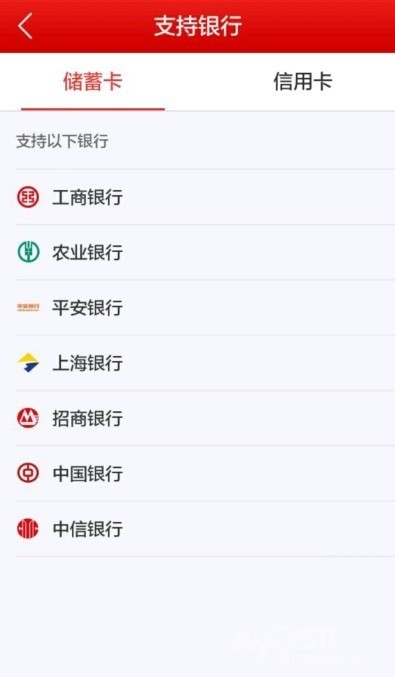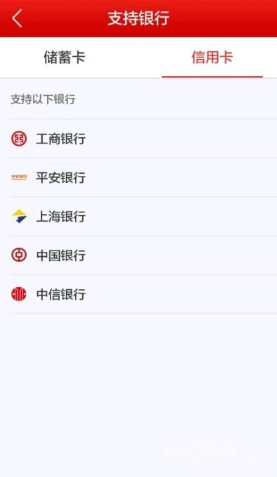 7、储蓄卡、信用卡都可以绑定,但是支持的银行只有几家,有点少啊: