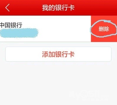 如果想更换银行卡,可以解绑,方法是长按住绑定的银行卡几秒钟,右侧就会出现”删除“的字样,点击就可以删掉了