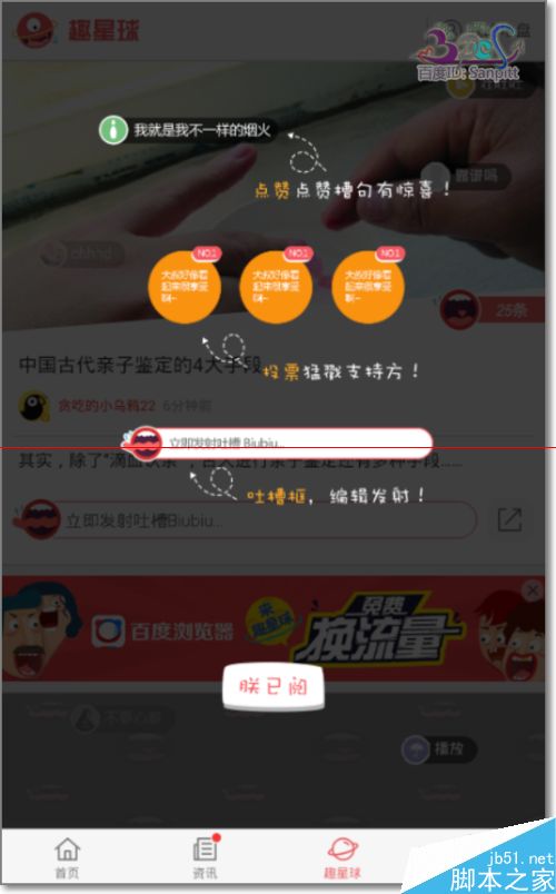 百度浏览器趣星球是什么,怎么玩,玩过吗,现在互联的花样也百出,让人跟上不飞速发展的节奏吗?百度浏览器趣星球是一个对文章点赞、吐槽功能,是不是发觉功能没什么新颖。但当然只这样了,功能是这样的,但玩法换了,新鲜了。玩过弹幕吧,一边看电视电影,屏幕上弹出网友的评论,一个个从屏幕上划过。