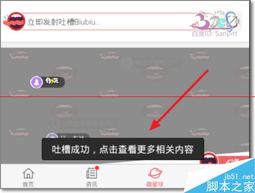 1、当你使用的百度浏览器进入趣星球中,看完一篇文章,是不是想发表一下言论,那么点击下面的发射球。