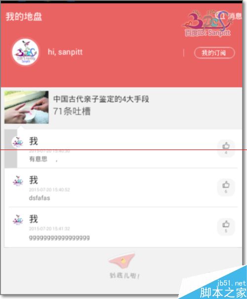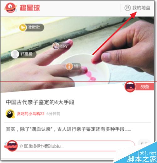 6、若想看到自己发射过的评论,则可以点击右上角的我的地盘