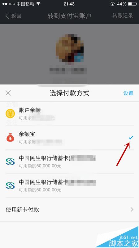 6、点击转账之后,我们可以看到付款方式可以更改。