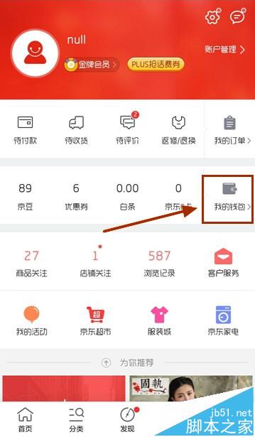 1、打开京东手机客户端,登陆后,进入右下角“我的”,然后进入“我的钱包“。