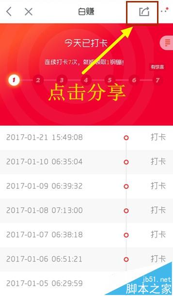 4、在“白赚”页面,点击右上角的“分享”图标,然后点击“复制链接“。