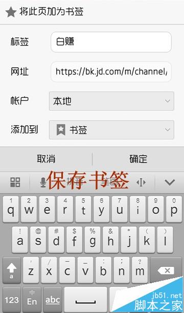 5、打开手机浏览器,粘贴刚刚被复制的链接,则打开京东白赚的页面,页面和手机客户端打开的界面一样,然后保存该书签。