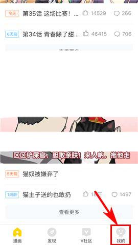 1)点开快看漫画APP,首先点击首页下方的【我的】,然后上划界面进入【设置】;(如下图)