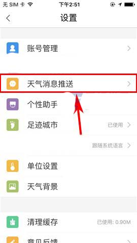 2)接着点击【天气消息推送】,随后进入【天气早晚提醒】一栏;(如下图)