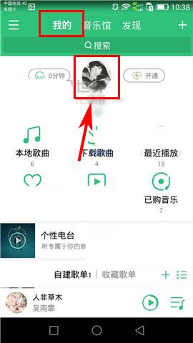 1)打开手机QQ音乐,首先点击“我的”界面中的个人用户头像,随后进入个人主页中的【评论】一栏;(如下图)
