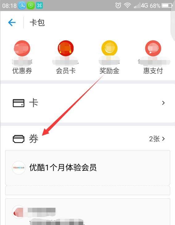支付宝抽奖的时候,抽中了优酷会员的券,想要使用,该怎么查找优酷会员券所在的位置呢?下面我们就来看看详细的教程。