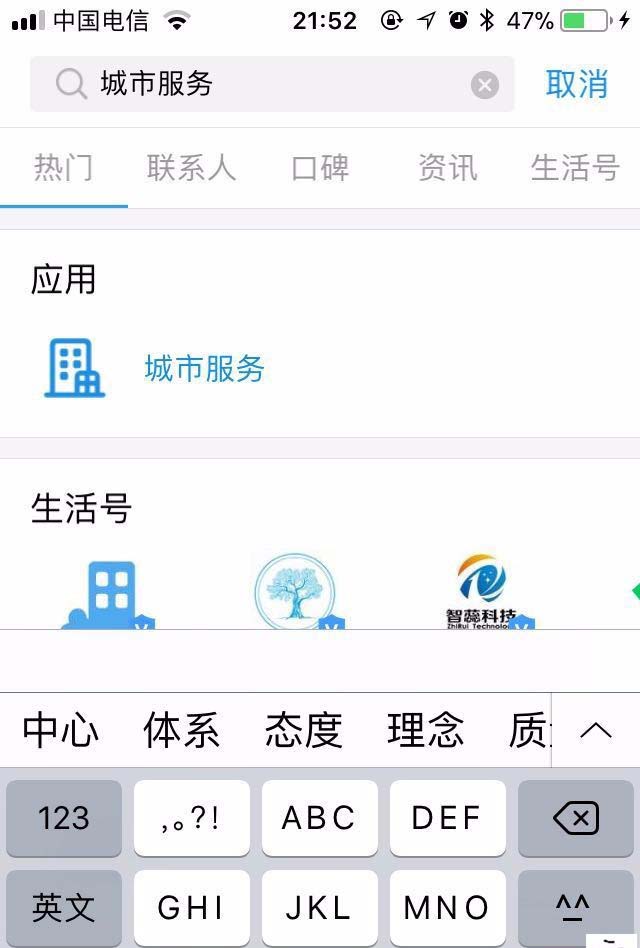 2、在上图的搜索框内输入城市服务,进入下图界面