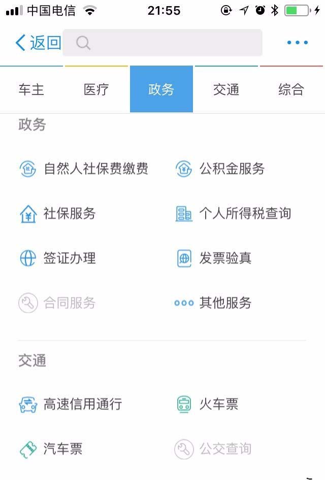 3、点击上图中应用下方的城市服务菜单,进入下图界面。