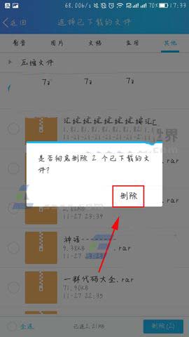 3)最后我们就可以看到QQ中已下载的文件了,找到要删除的文件勾选后点击【删除】,弹出提醒后点击删除即可。(如下图)