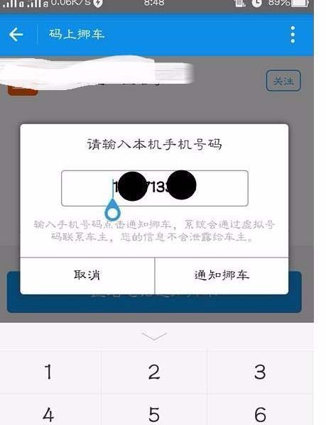 6、信息都正确,根据提示输入自己的电话号码,点击通知挪车