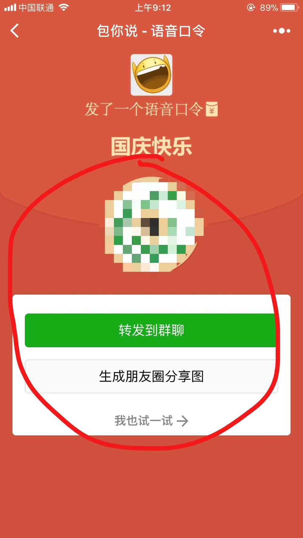 5、当你的朋友点开你的红包,按照你输入的文字念出来,即可收取你的红包!