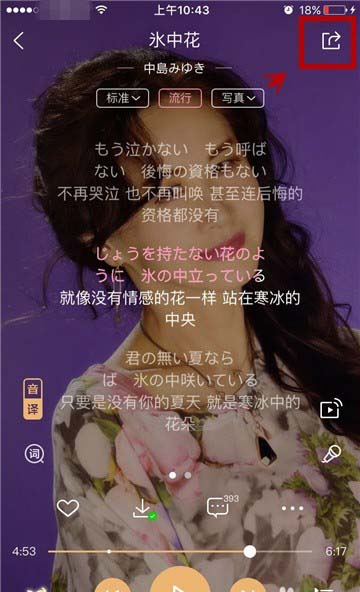 3、打开歌曲后,点击歌曲页面右上角的分享按钮。