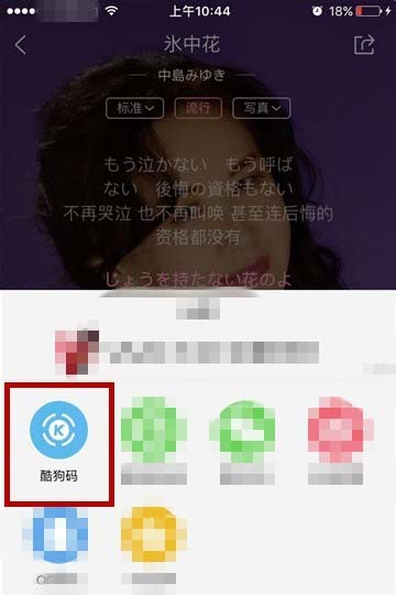 4、在弹出的分享渠道选择菜单中,点击第一个“酷狗码”按钮