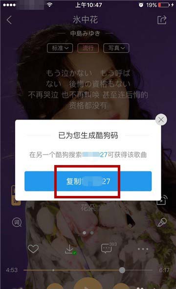 5、系统便会自动生成一个酷狗码,点击“复制”