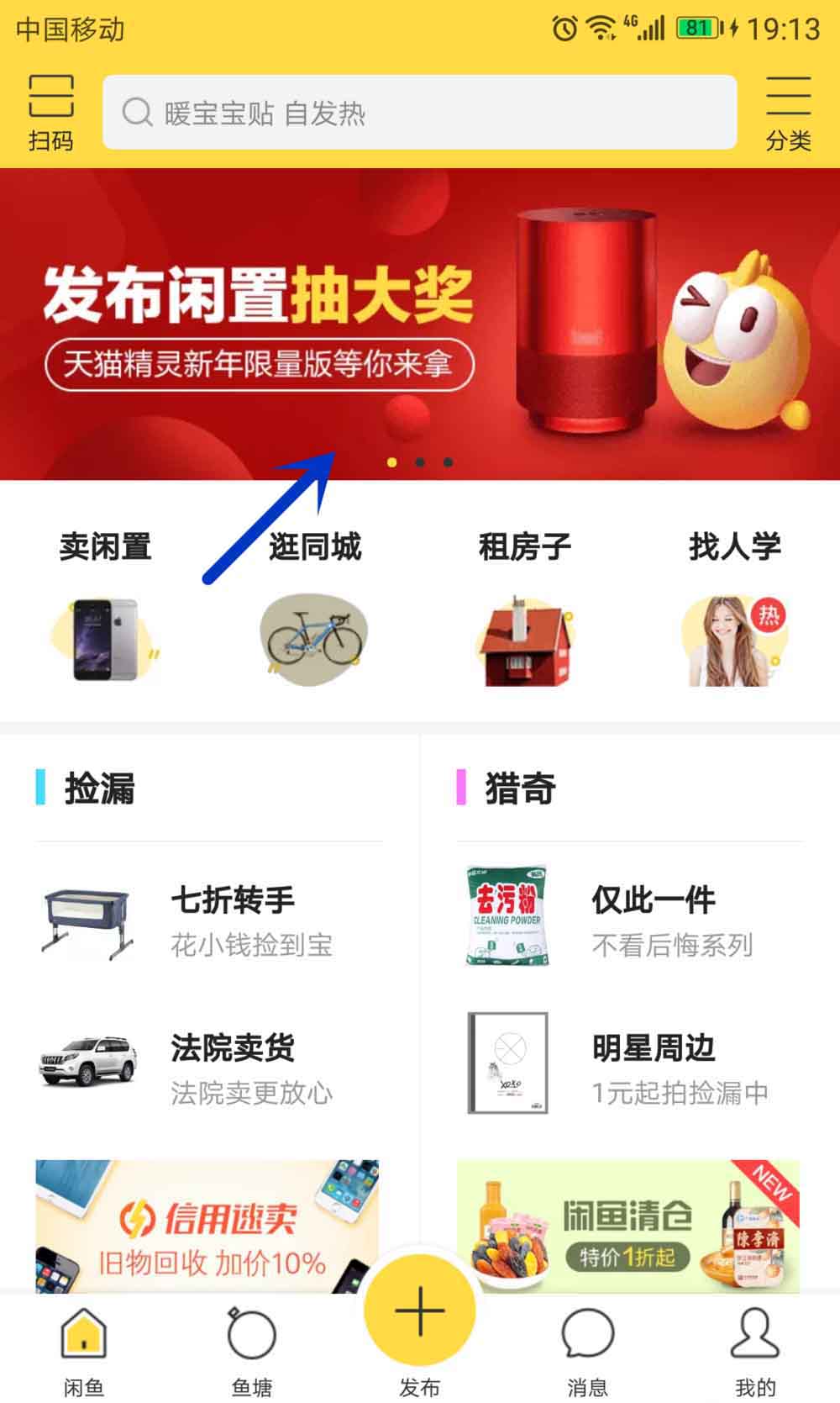 1、下载安装闲鱼,用淘宝账号登陆。发布闲置商品就可以抽取天猫精灵优惠券。