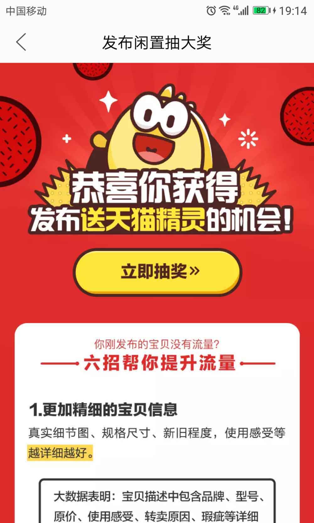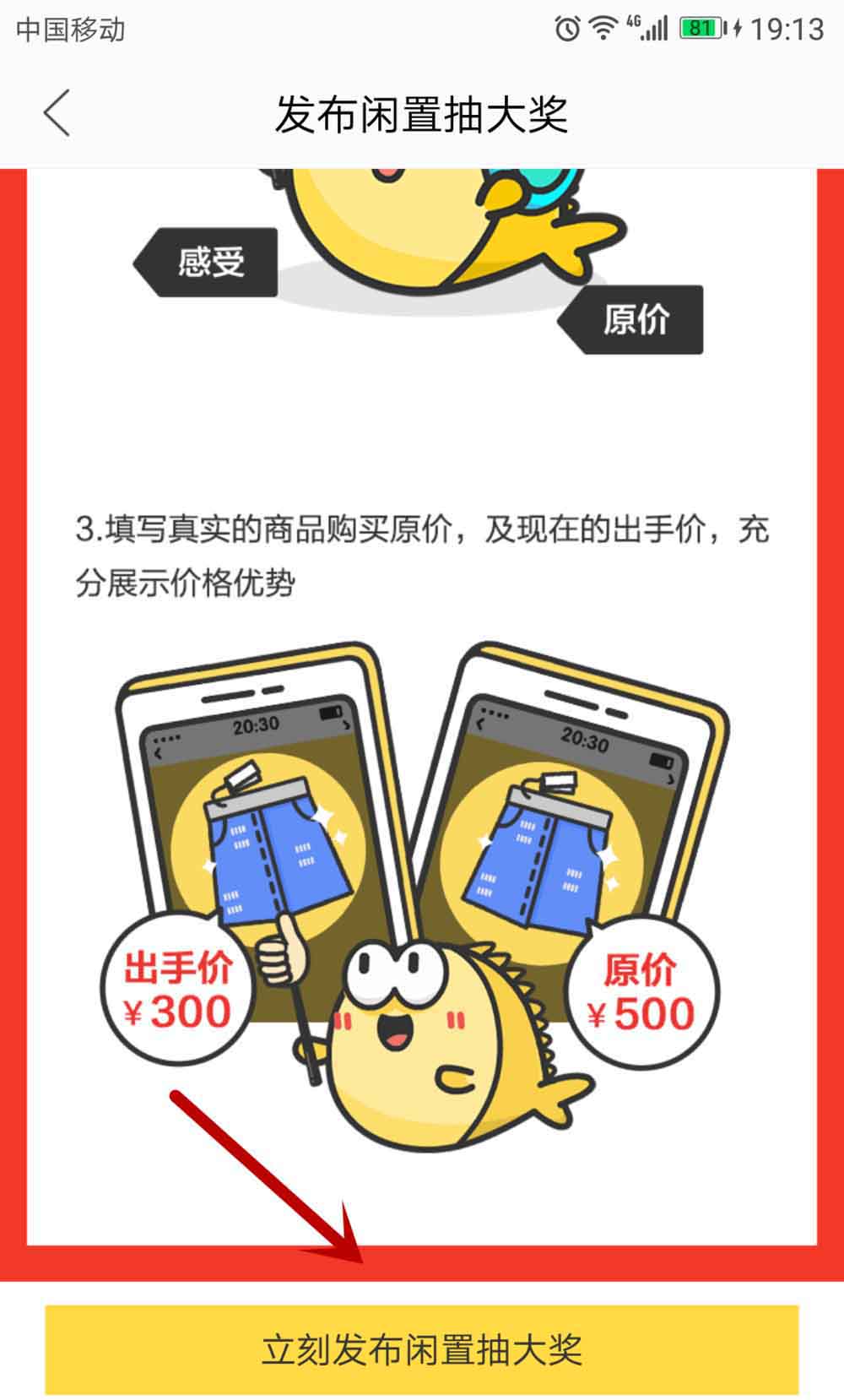 2、仔细阅读发布闲置秘籍。点击“立即发布闲置抽大奖”。
