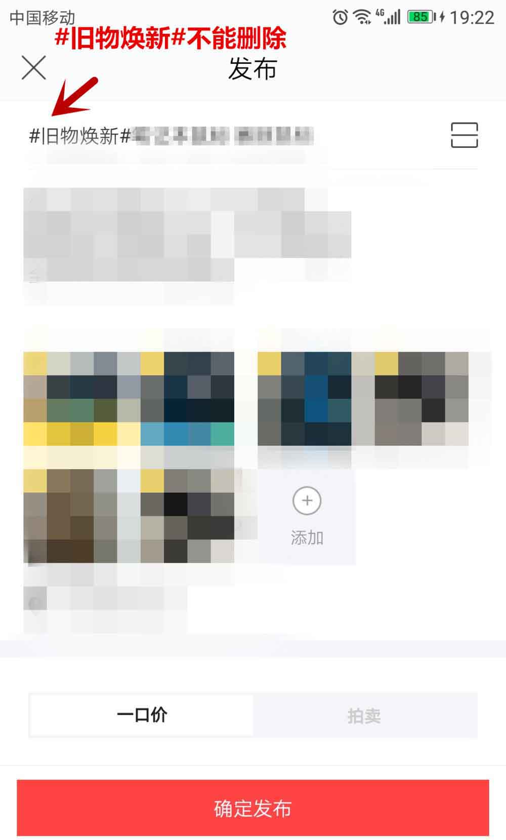3、#旧物焕新#这个不能删除,不让不能参加抽奖。安装要求发布闲置商品。