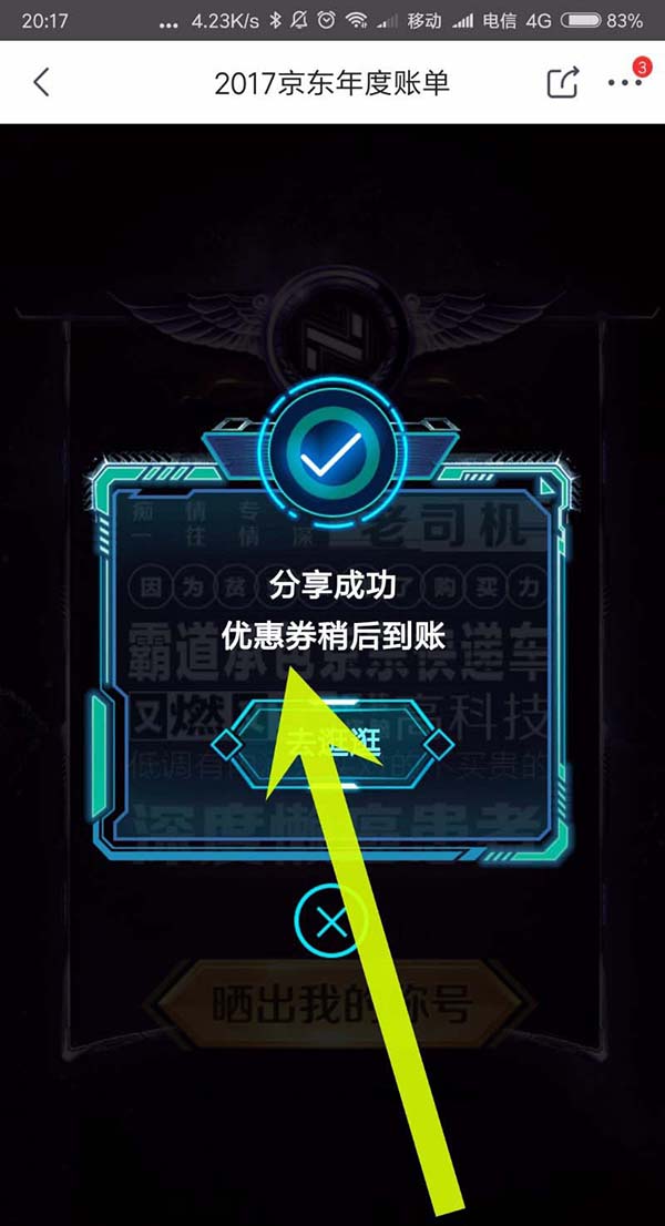6、分享成功之后,我们可以得到一些优惠券