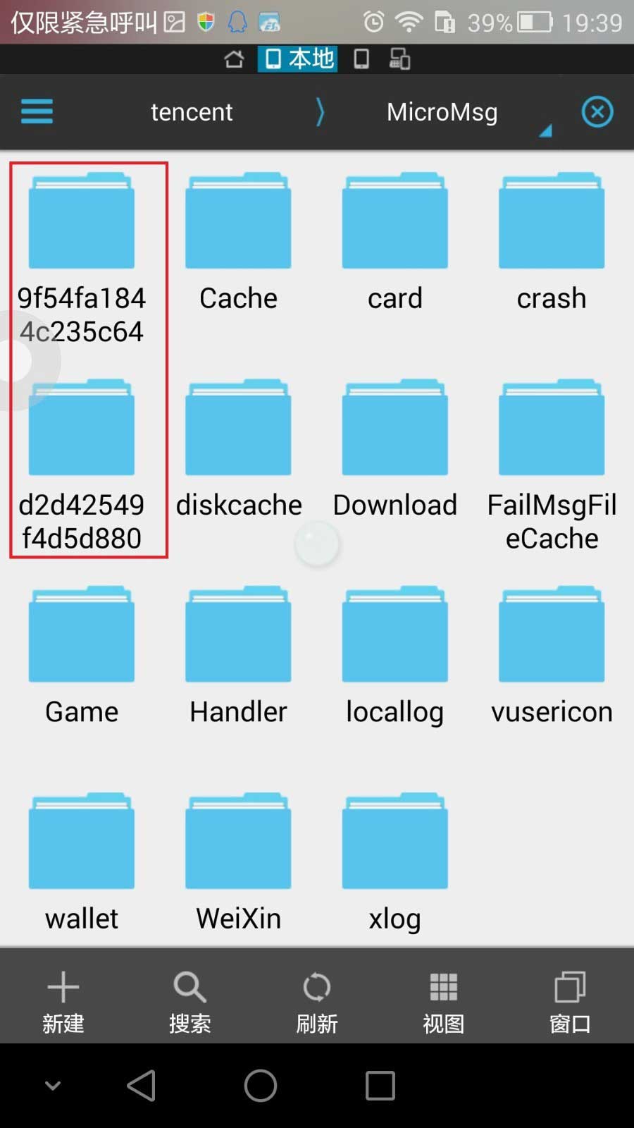 4、返回到MicroMsg文件里,新建一个文件夹,名字随你命名,当然新建的文件的存放位置你也可以放到你喜欢的位置去。