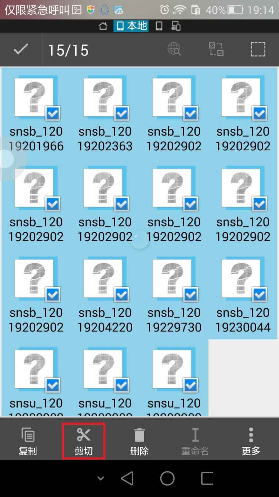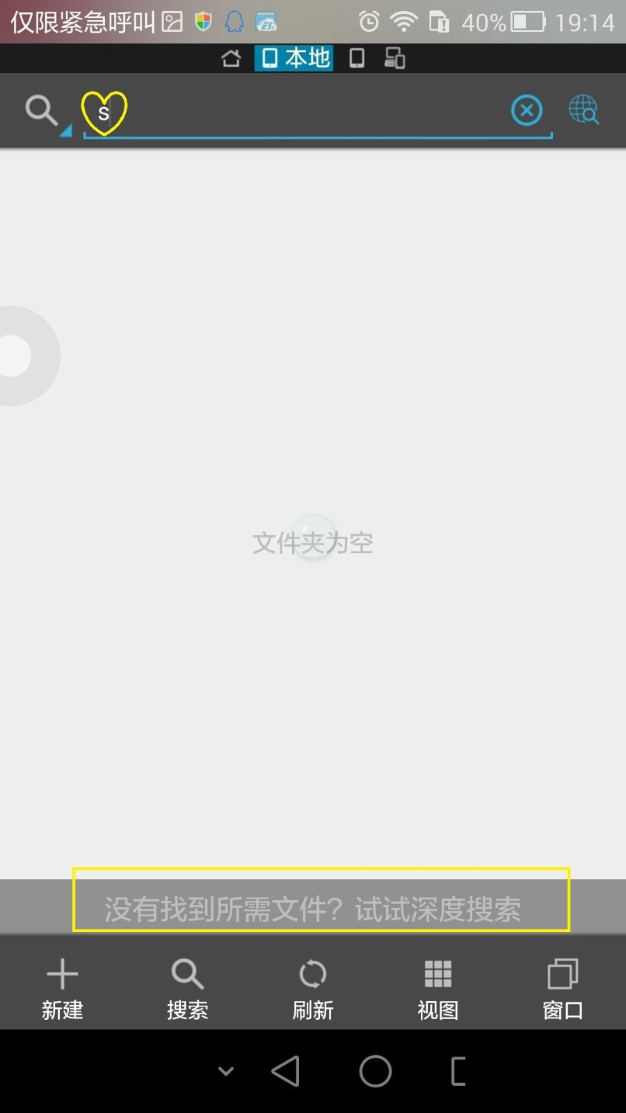 6、打开es文件浏览器,按上面路径找到sns文件,进去后输入 s 搜索,es会提示你使用高级搜索,点击深度搜索。搜索出来后全选剪切。