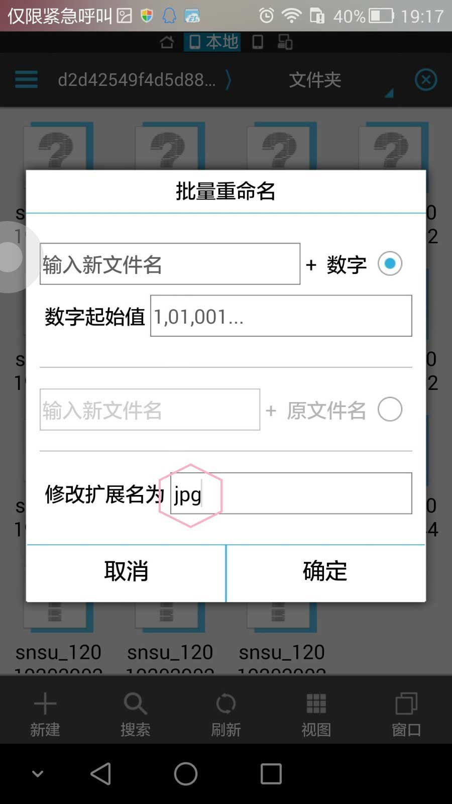 7、返回到MicroMsg文件里,粘贴到你刚刚新建的文件夹里面。全选,点击重命名。在修改扩展名框框里输入:jpg 其他不要改。