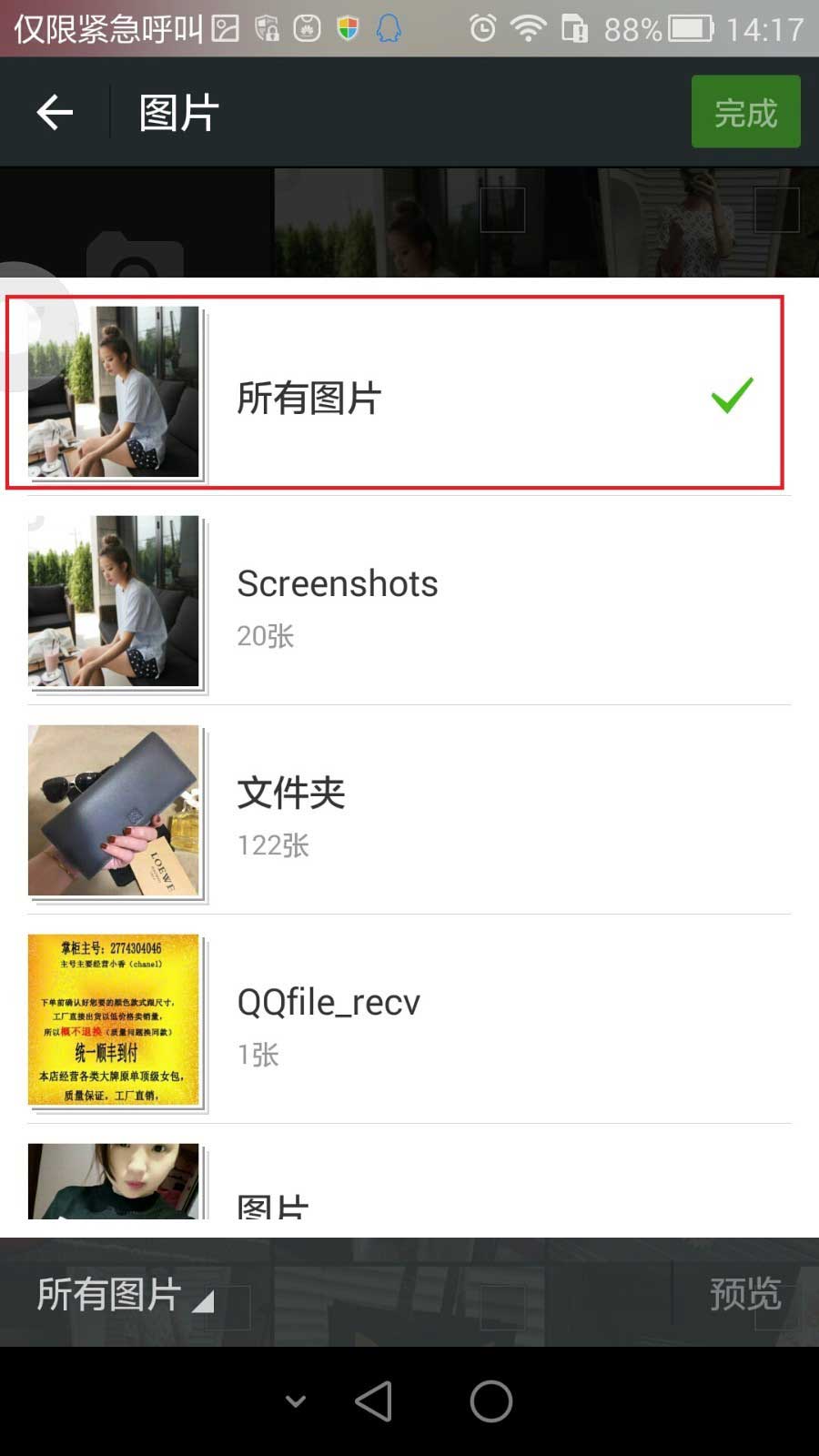 9、最后打开微信,不要选择你新建的文件夹上传,选择所有图片上传。