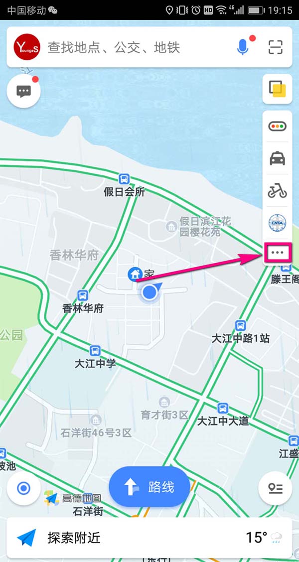 2、进入到高德地图首页以后,在屏幕右侧点击三个点的图标,如图所示。