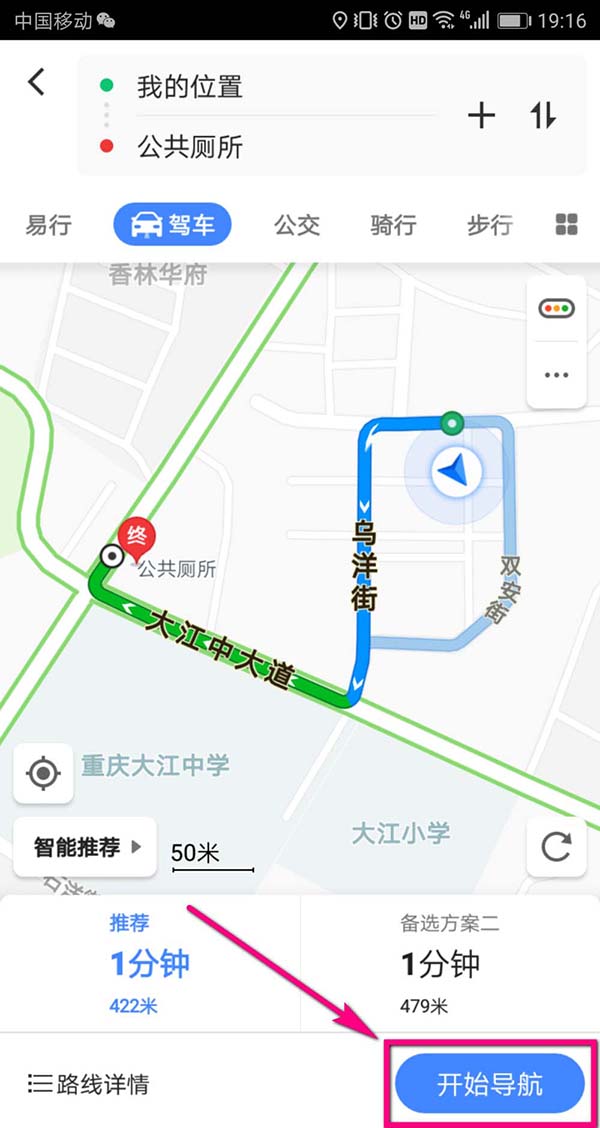 7、点击“开始导航”以后,软件就开始语音提示你如何前进了,跟着语音去往厕所就可以了。