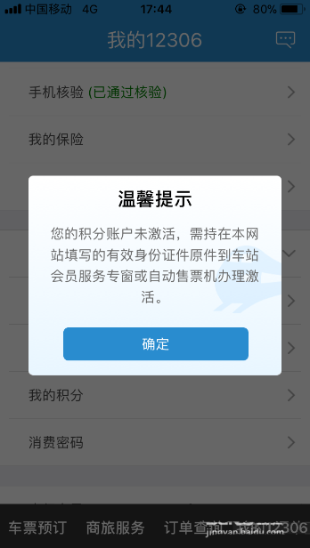 2、成功激活后,以后要想查询积分数量,打开手机12306软件后登录个人的账号。