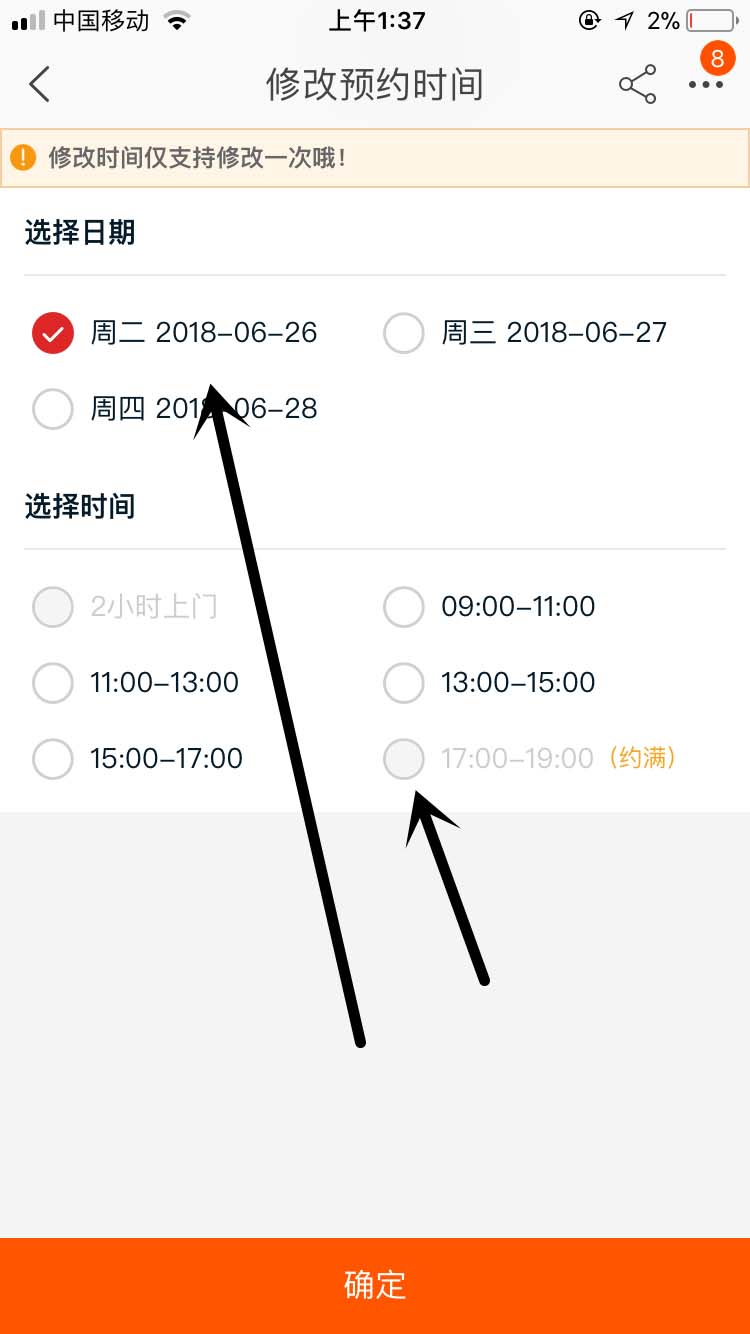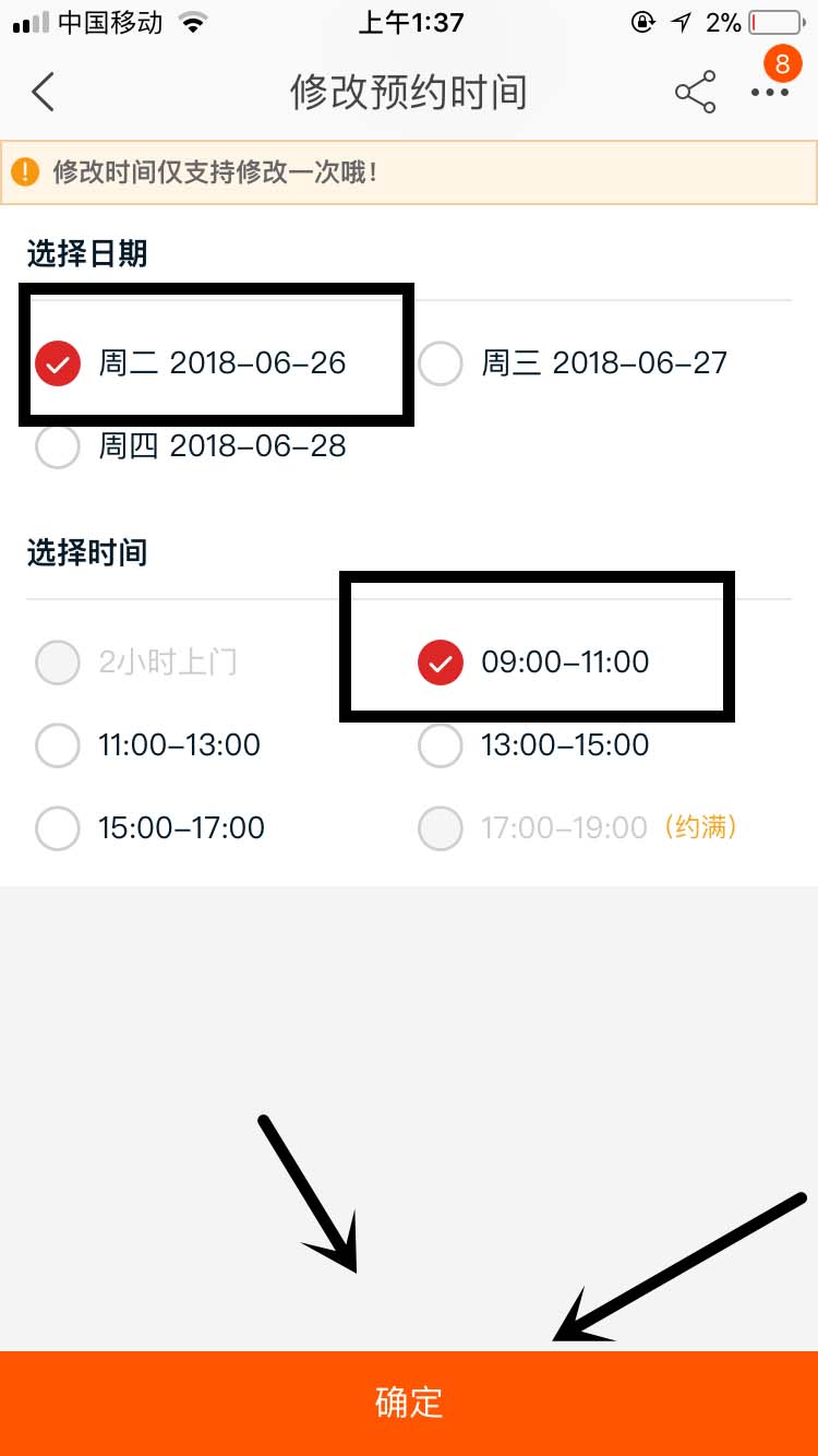 3、这里要特别提醒的一个地方是,上门取件的时间在APP里只能修改一次哦!
