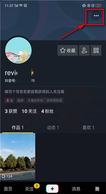 1.在【我】的界面点击右上方【...】