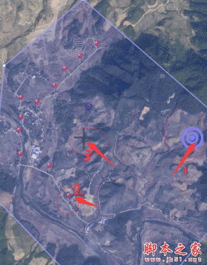 7、放大地图,用“1”和“2”进行规划,“3”用来标注。