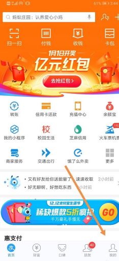 1.首先我们打开支付宝,进入页面之后,点击我的。