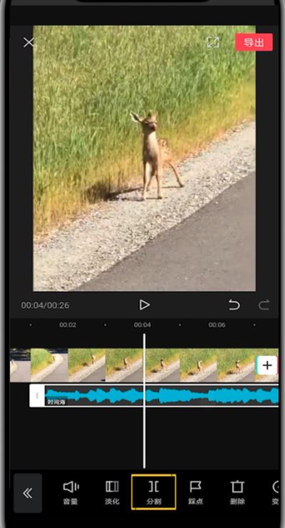 6、找到音乐高潮开头点击分割