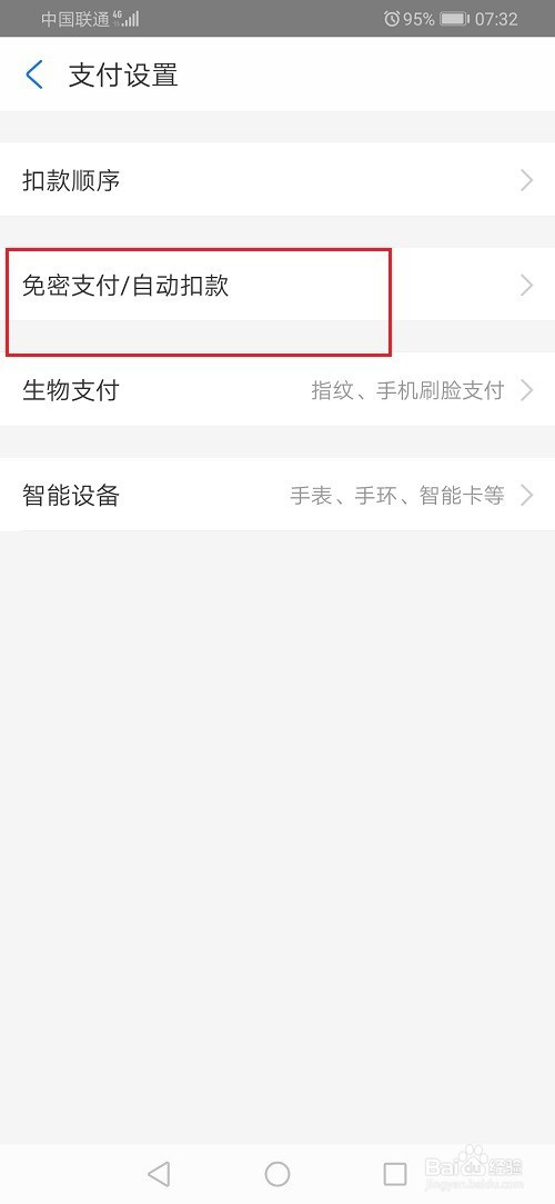 第四步进去支付设置之后,点击免密支付/自动扣款,如下图所示: