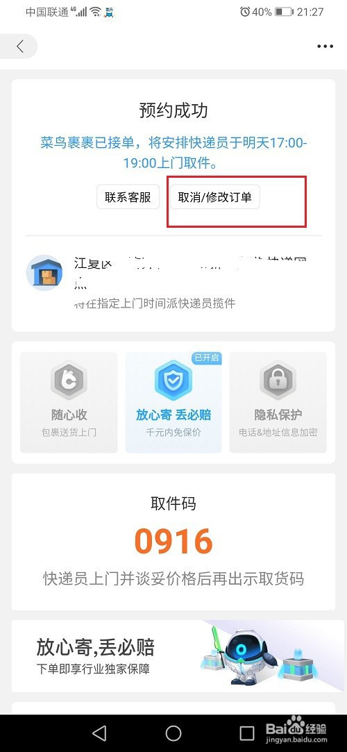 第五步进去之后,点击取消/修改订单,可以进行取消订单,如下图所示: