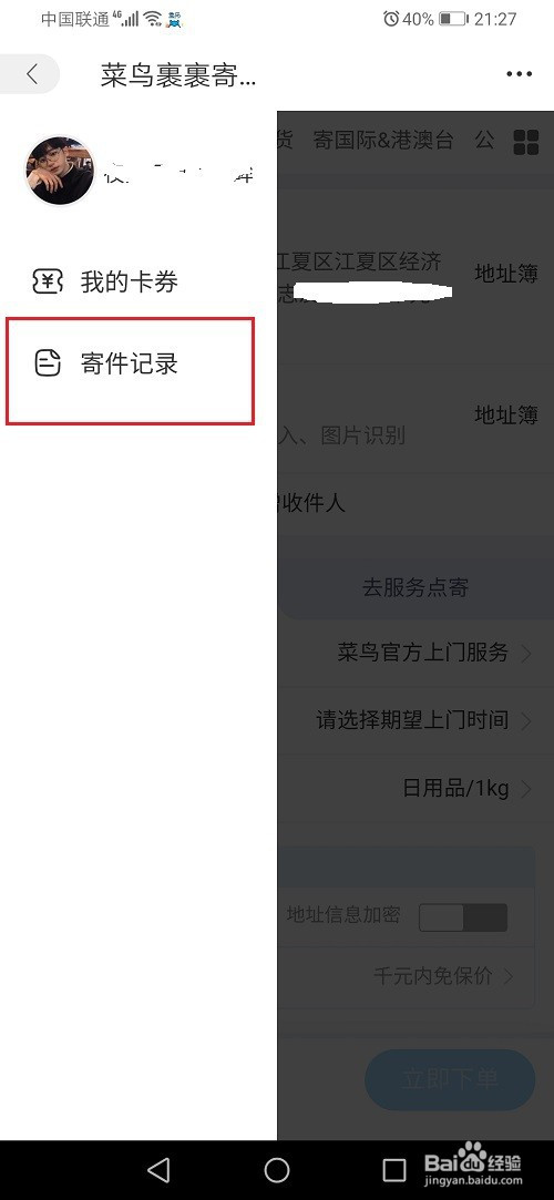 第三步进去之后,点击寄件记录,如下图所示: