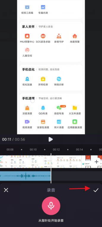 5、录音完成后,再次点击按钮,点击右侧的√。